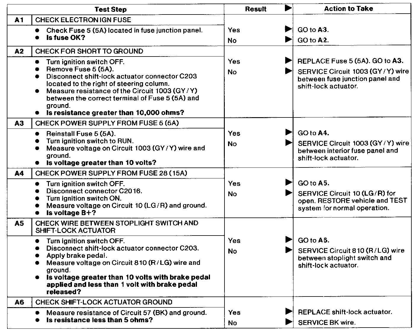 A: Shift Interlock System Does not Release/Lock Correctly