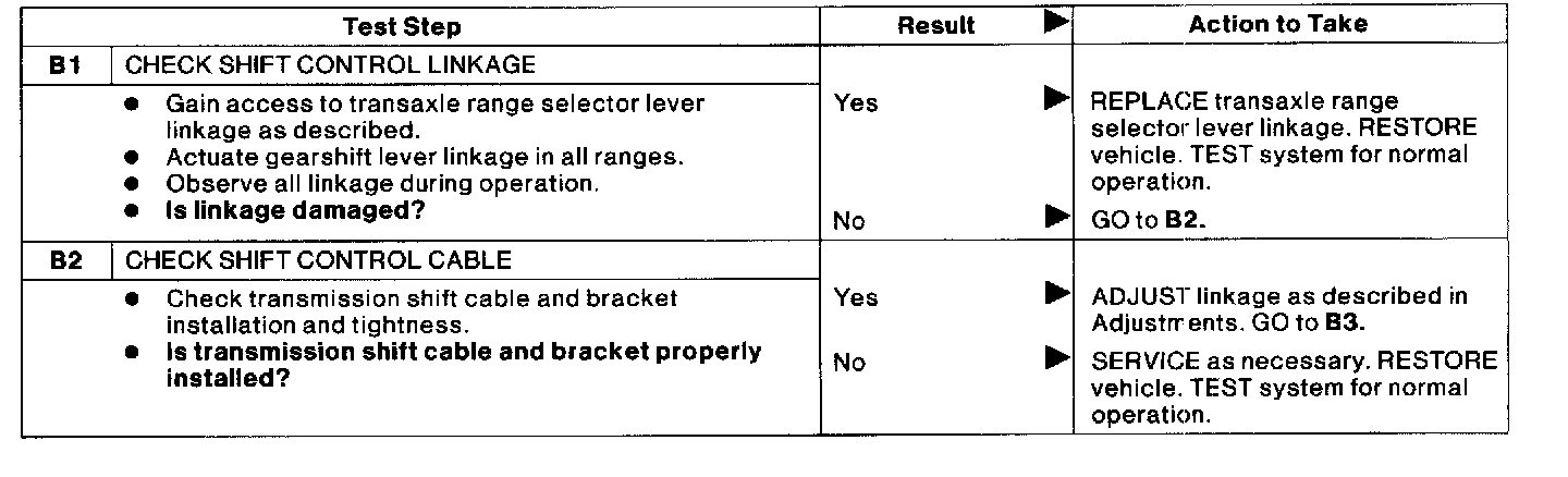 PINPOINT TEST B: SHIFT CONTROL LINKAGE BINDING, OUT OF PROPER GEAR RELATIONSHIP