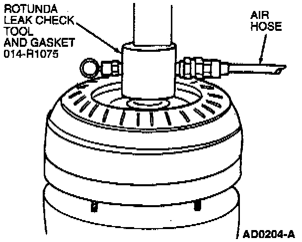 2. Install Rotunda Leak Check Tool and Gasket 307-F015 (014-R1075) into the torque converter hub.