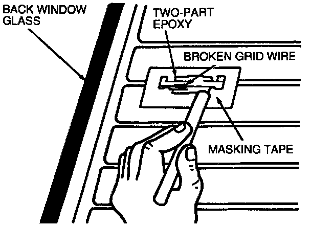 7. Two-part epoxy will thoroughly cure in 24 hours. Start engine, turn heated back window switch and light on and leave on for five minutes. Inspect grid wire repair area.
