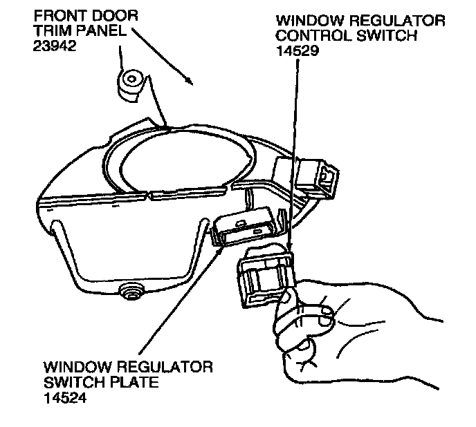 3. Using a small screwdriver, carefully spread switch retaining walls on window regulator switch plate and remove switch.