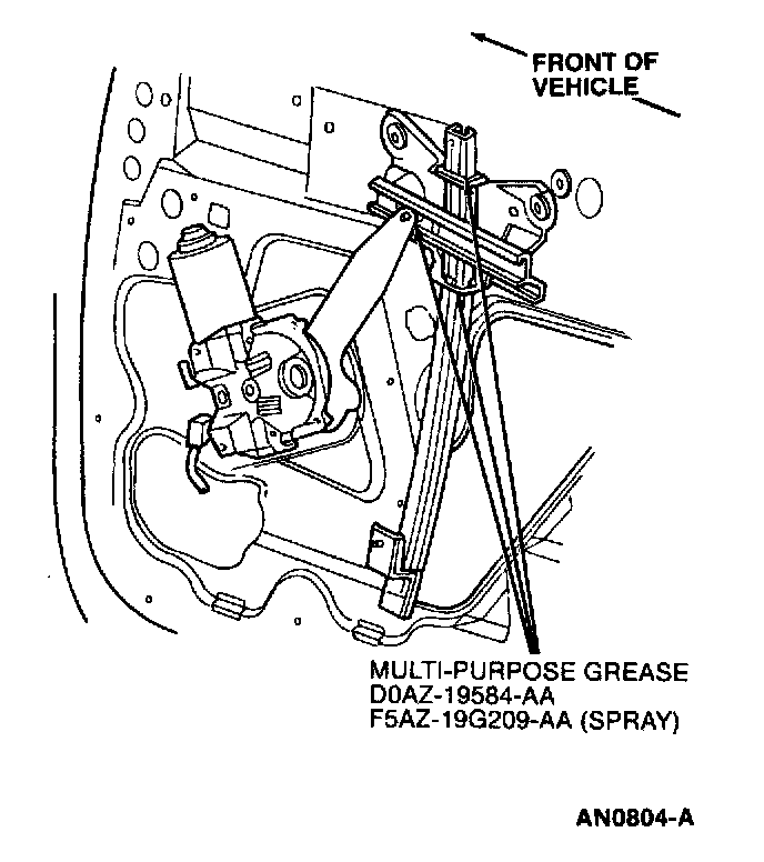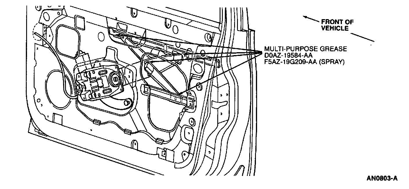 Lubricate entire outer surface prior to assembly with Multi-Purpose Grease Spray F5AZ-19G209-AA or equivalent meeting Ford specification ESR-M1C159-A. Use a generous amount of Multi-Purpose Grease DOAZ-19584-AA or equivalent meeting Ford specification ESB-M1C93-A on tube run for smooth operation.