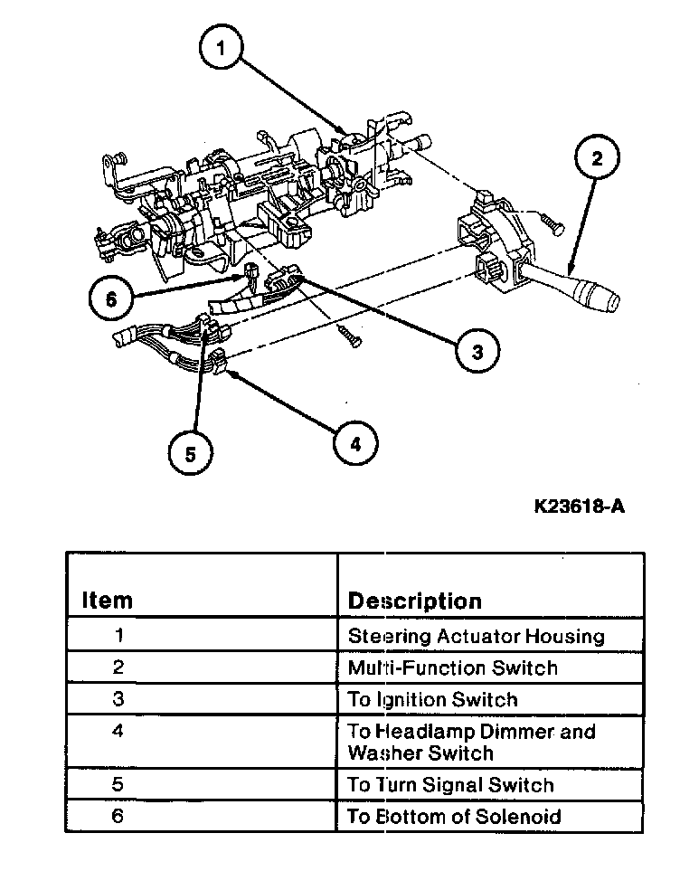 The multi-function switch assembly, which is mounted to the steering actuator housing, provides electrical switching for: