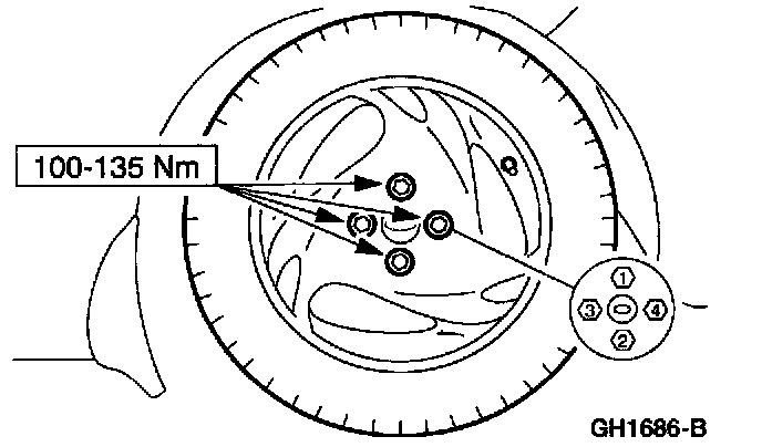 2. NOTE: Tighten the lug nuts in the specified sequence.