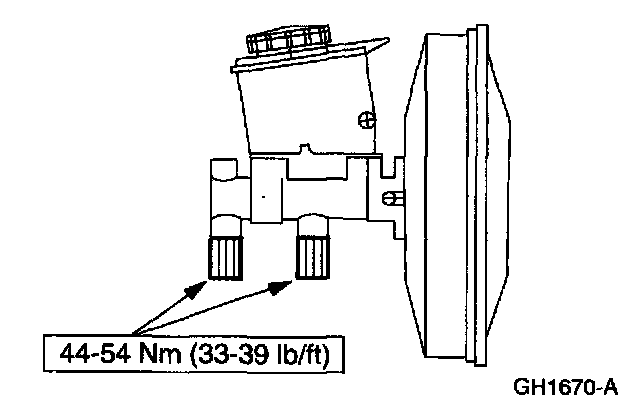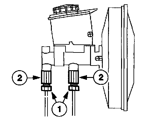 1 Disconnect the two brake line fittings and plug.