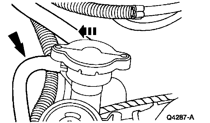 8. Remove the radiator cap and disconnect the radiator overflow hose.
