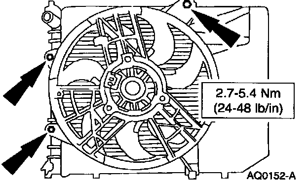 11. Remove the bolts and remove the fan motor, blade and shroud assembly.