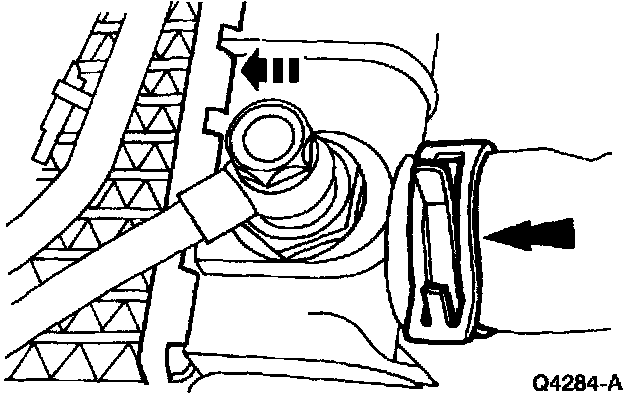 6. Remove the upper radiator hose from the radiator and, if equipped, the upper oil cooler inlet tube.