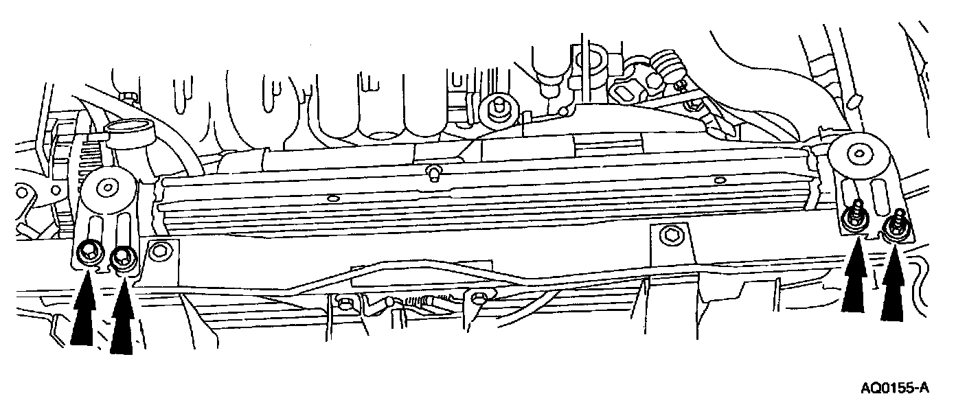 9. Remove the bolts and nuts for A/C condenser core from the brackets at the top of the radiator.