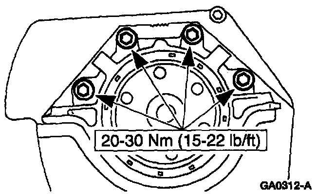 Note: Apply axial load to the rear of the crankshaft simultaneously to tightening of the bolts.