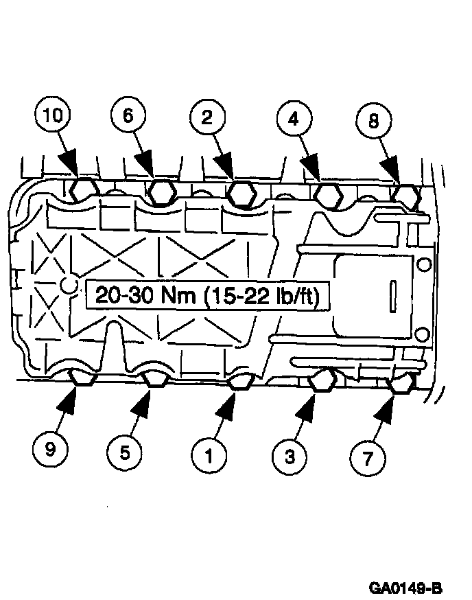 3. Tighten the bolts in the sequence shown to 40-60 Nm (30-44 ft. lbs.).