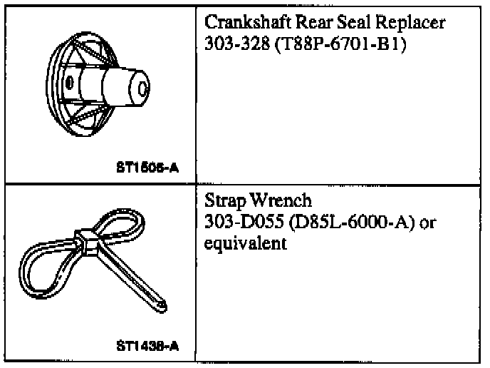 6. Note: Coat the rear oil seal area and the crankshaft rear oil seal lip with Super Premium 5W30 SAE Motor Oil X0-5W30-QSP or equivalent meeting Ford specification WSS-M2C153-G.