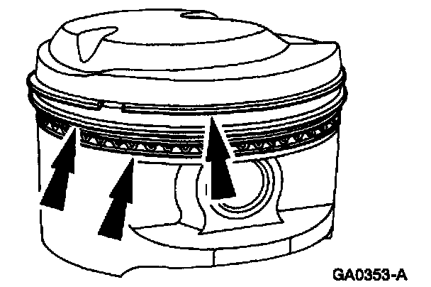 4. Install the piston rings using a suitable expander. The compression ring is to be installed with the grooved side facing down.