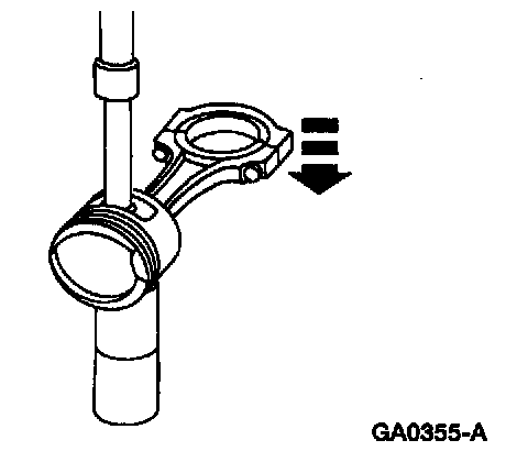 3. Mark the pistons to ensure assembly with the same connecting rod and installation in the same cylinder from which they were removed.