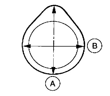 Measure diameter (A) and diameter (B) with a vernier caliper. The difference in measurements is the lobe lift.