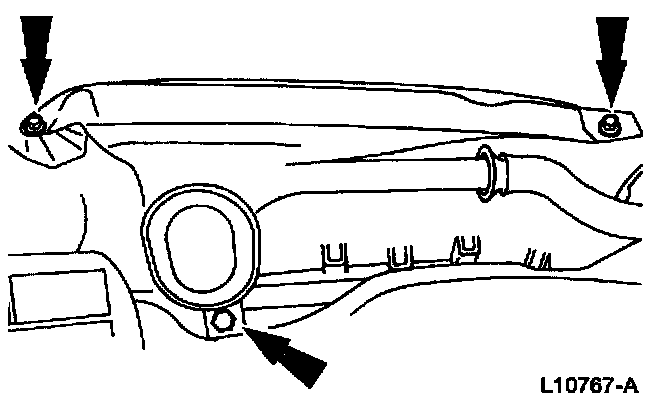 2. Remove the screws and the LH windshield defroster hose nozzle.