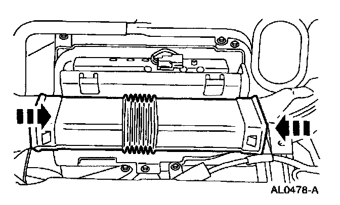 6. Compress and remove the A/C evaporator register duct.