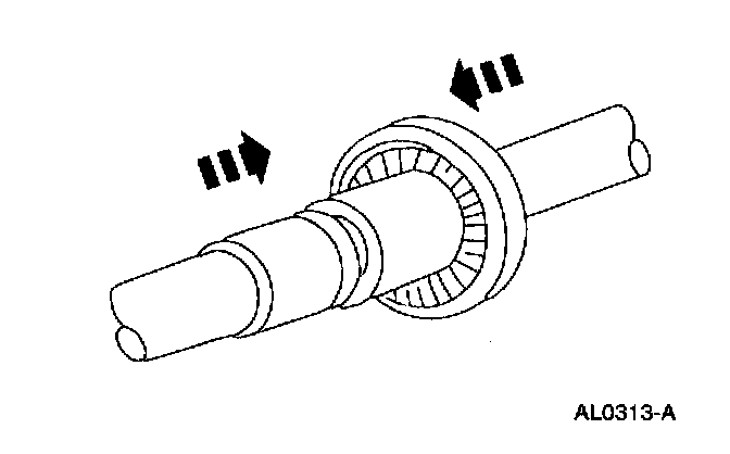4. Connect the spring lock coupling fittings with a twisting motion until the A/C tube lock coupling spring snaps over the flared end of the female fitting.