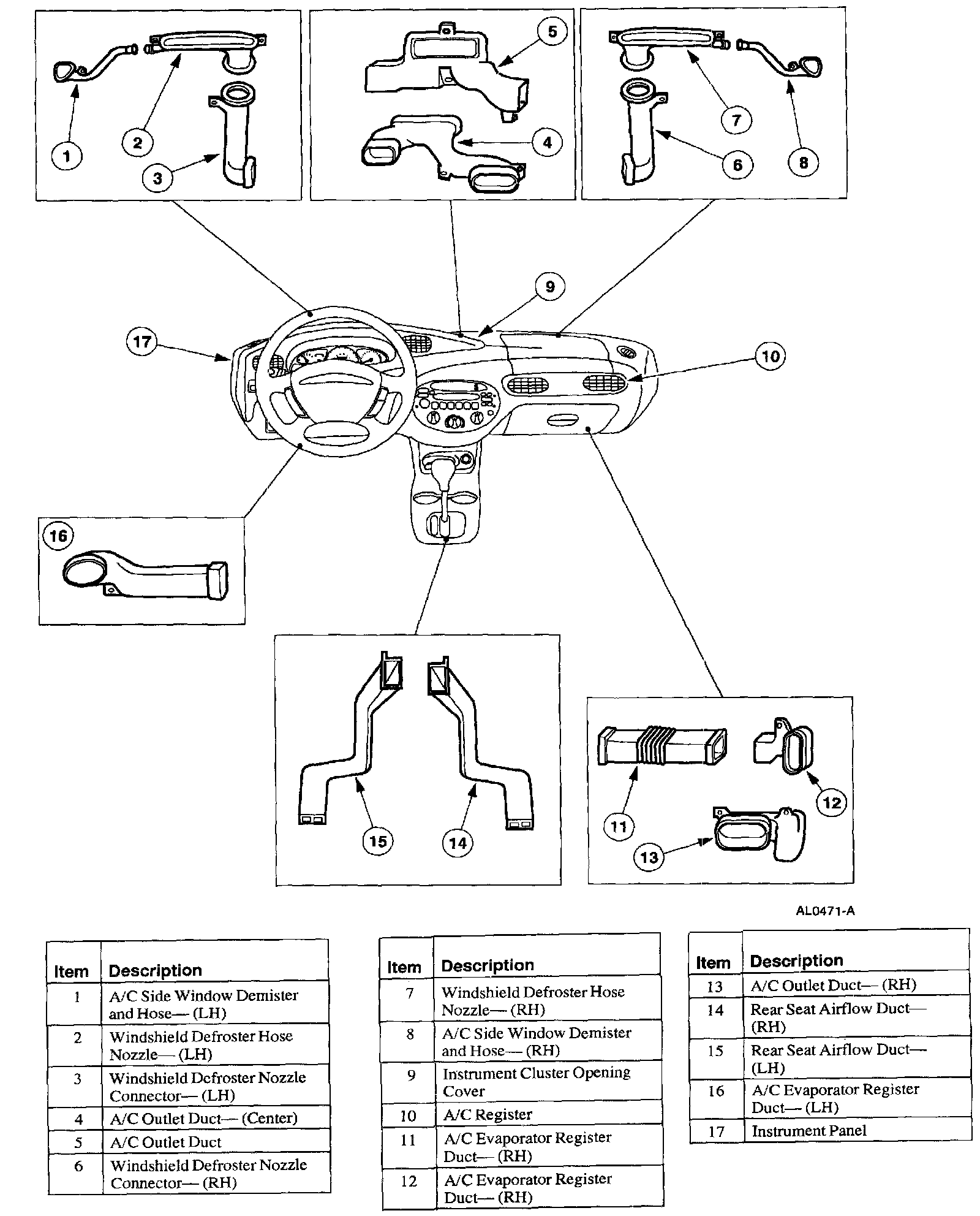 - instrument panel A/C register.