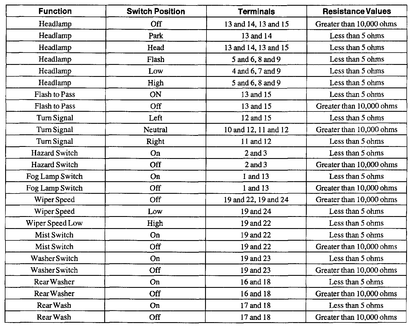 If the resistances are not as specified, replace the component in question. If the resistances are as specified, the component in question is OK.