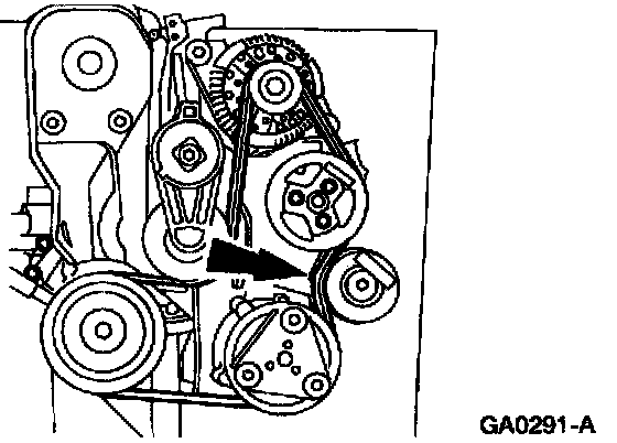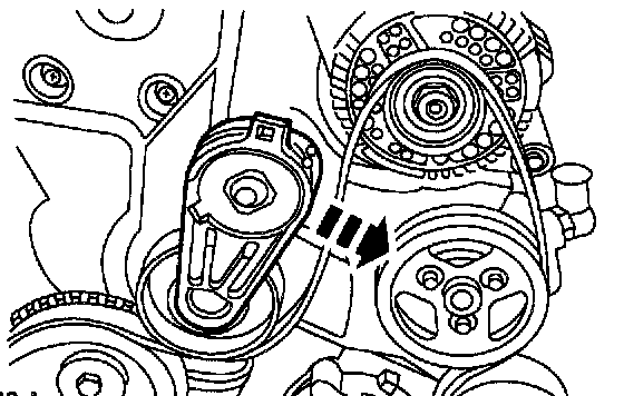 Removal1. Rotate the drive belt tensioner clockwise to release belt tension.