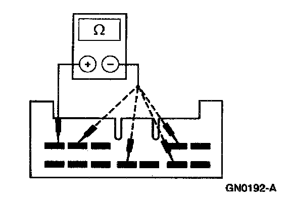 3. Measure resistance between the power door lock relay, terminal 6, and the power door lock relay terminals.