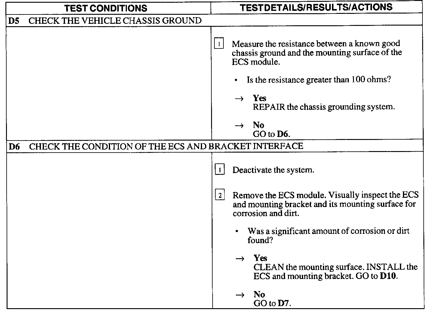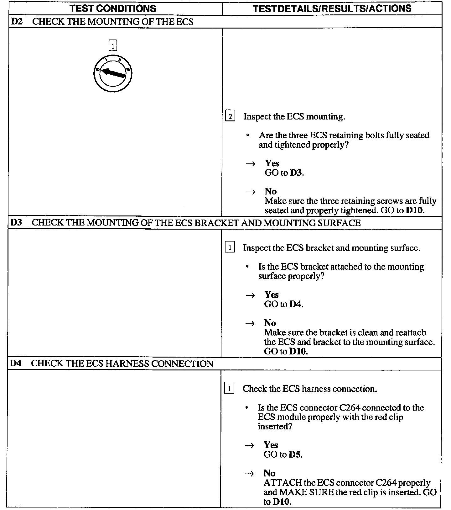 - improper tightening torque of the ECS module retaining bolts.