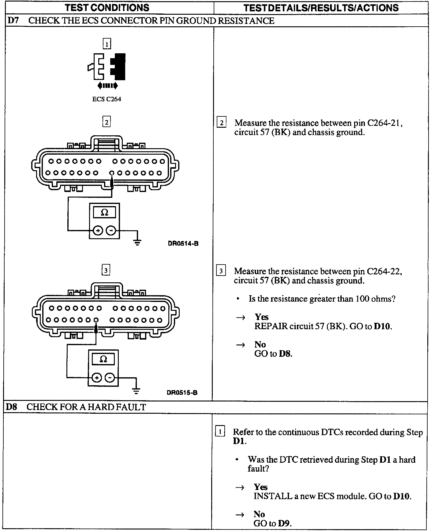 - high resistance on both ECS logic ground circuits 57 (BK).