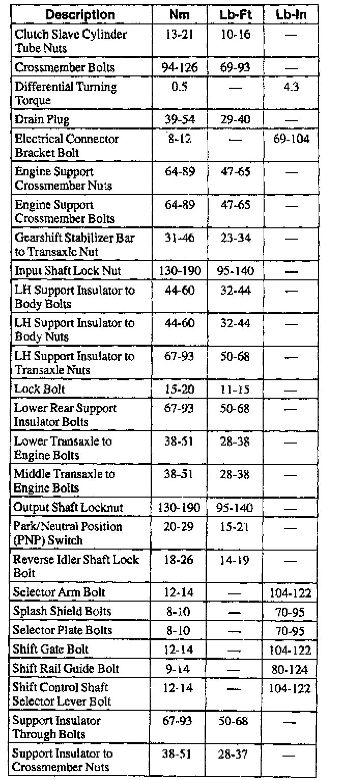Torque Specifications