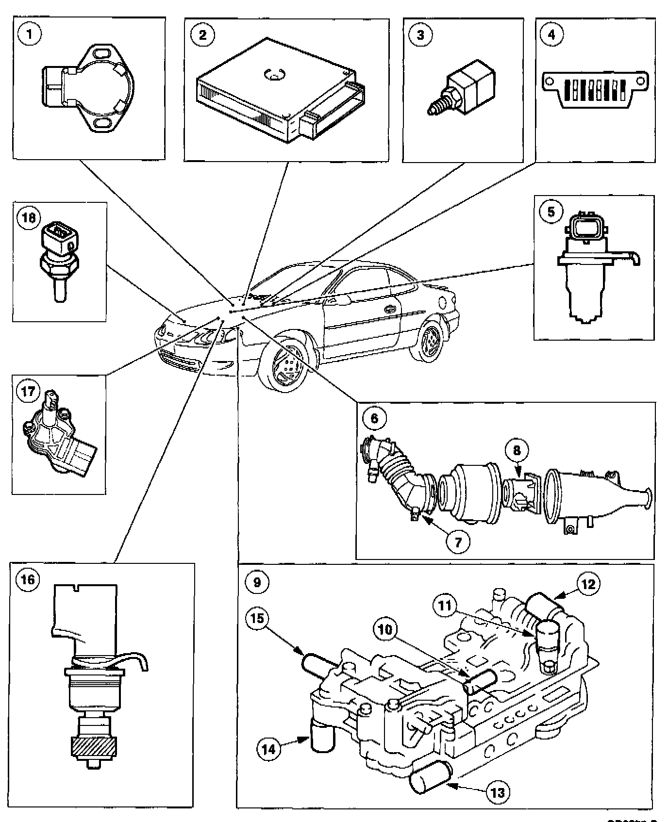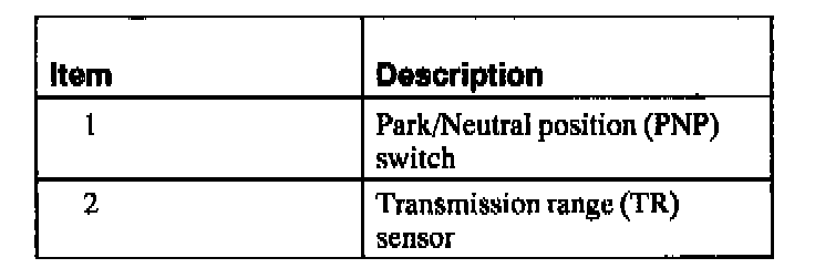 The Transmission Range (TR) sensor is mounted on top of the automatic transmission. The TR sensor prevents the engine from being started except when the gearshift lever is in the park (P) or neutral (N) position.