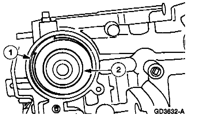 1. Apply Motorcraft MERCON(R) Multi-Purpose Automatic Transmission Fluid XT-2-QDX or equivalent meeting Ford specification MERCON(R) to the servo piston large seal with inner diameter (piston stem side): 58.5 mm (2.303 inch). MERCON(R) automatic Transmission Fluid is being replaced by MERCON(R) V as a service fluid, as per TSB 06-14-4.