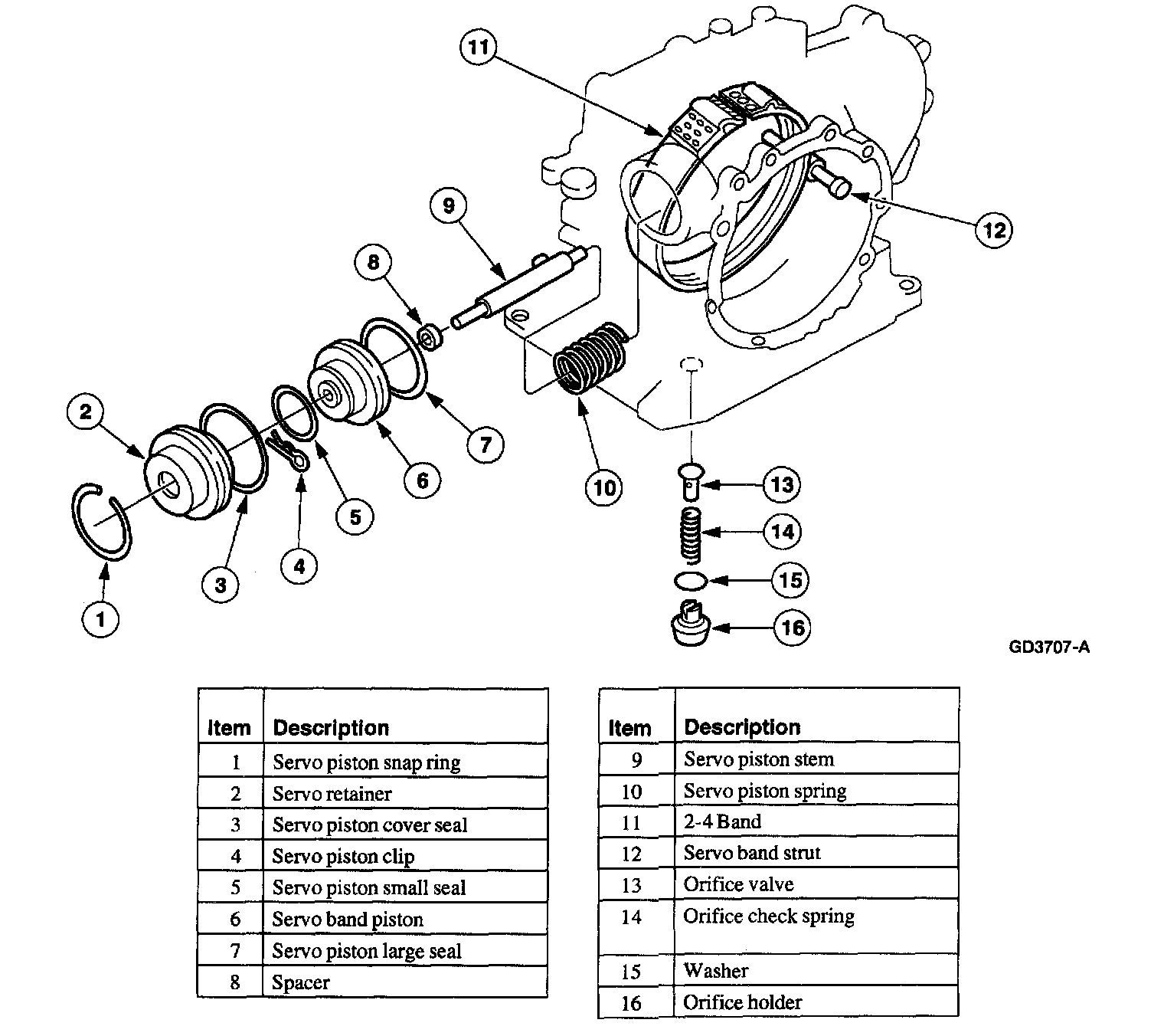 - Inspect the servo band piston for damage or wear.