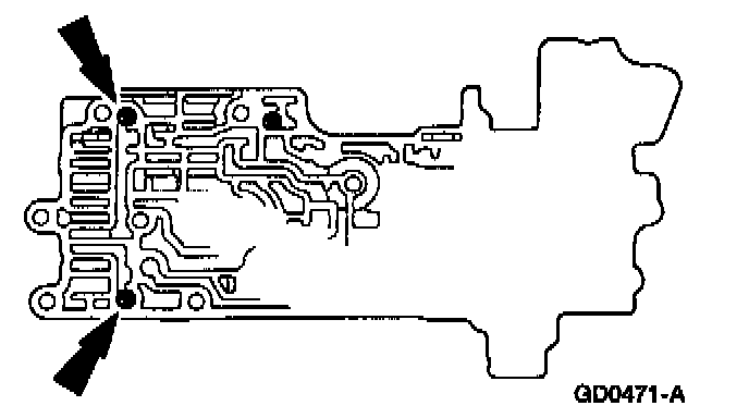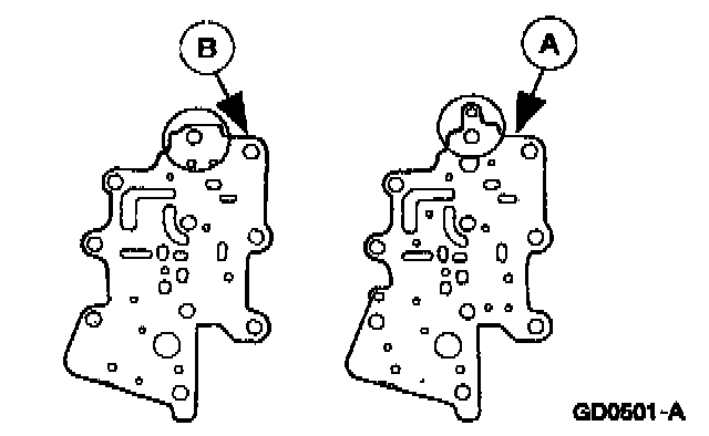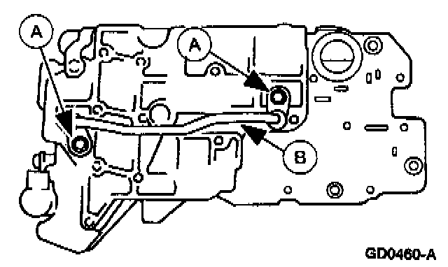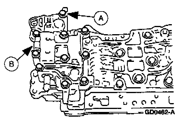 Remove the (A) upper control valve body bolts and the (B) upper control valve body.
