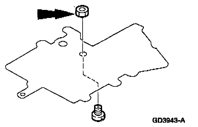 1. Remove the (A) fluid bypass tube bolts and the (B) fluid bypass tube. Remove the O-rings and seals from the fluid bypass tube and discard them.