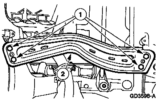 1. Remove the transmission support crossmember bolts and nuts.