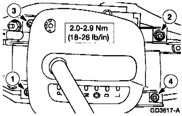 1. Note: Adjust the transmission control selector dial bezel and then tighten the screws in the sequence shown.
