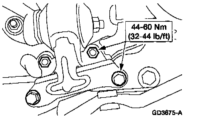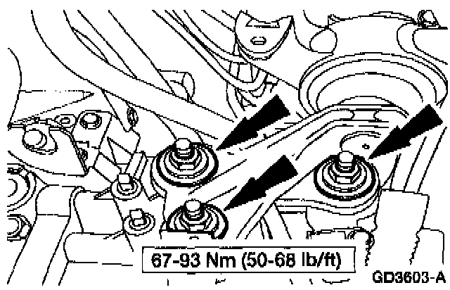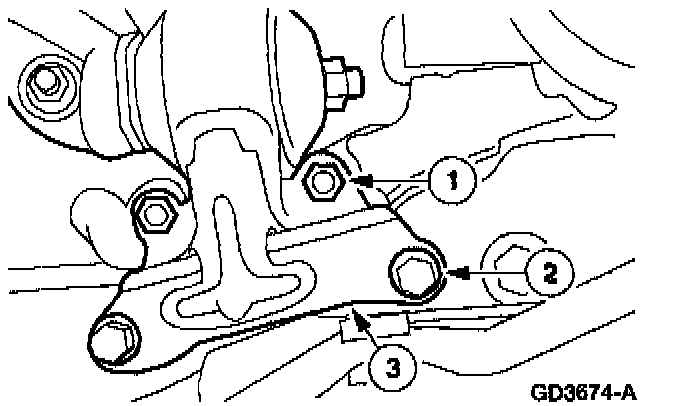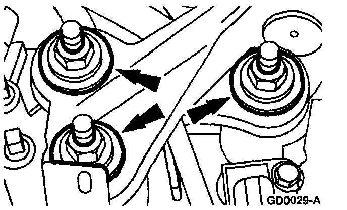 3. Remove the LH transmission insulator to transmission nuts and washers.