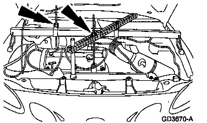 - Loosen the nuts in the Three-Bar Engine Support to lower the engine.