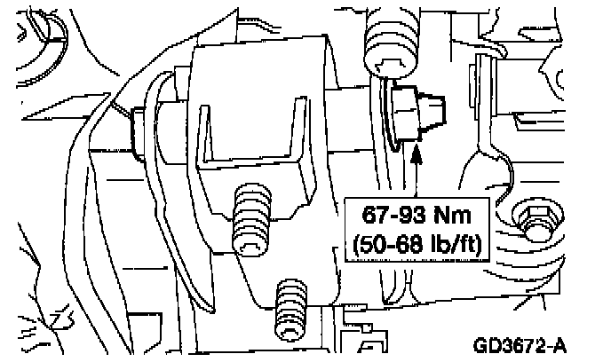 7. Lower the rear of the engine partially to gain access to the lower rear support insulator bolt.
