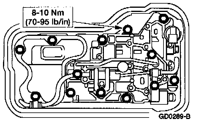 4. Install the transmission fluid pan with a new oil pan to case gasket.