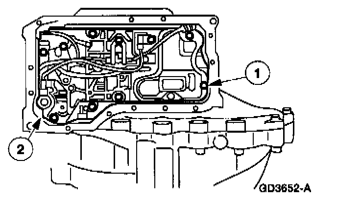 1. Install the transmission fluid pan and oil pan to case gasket.