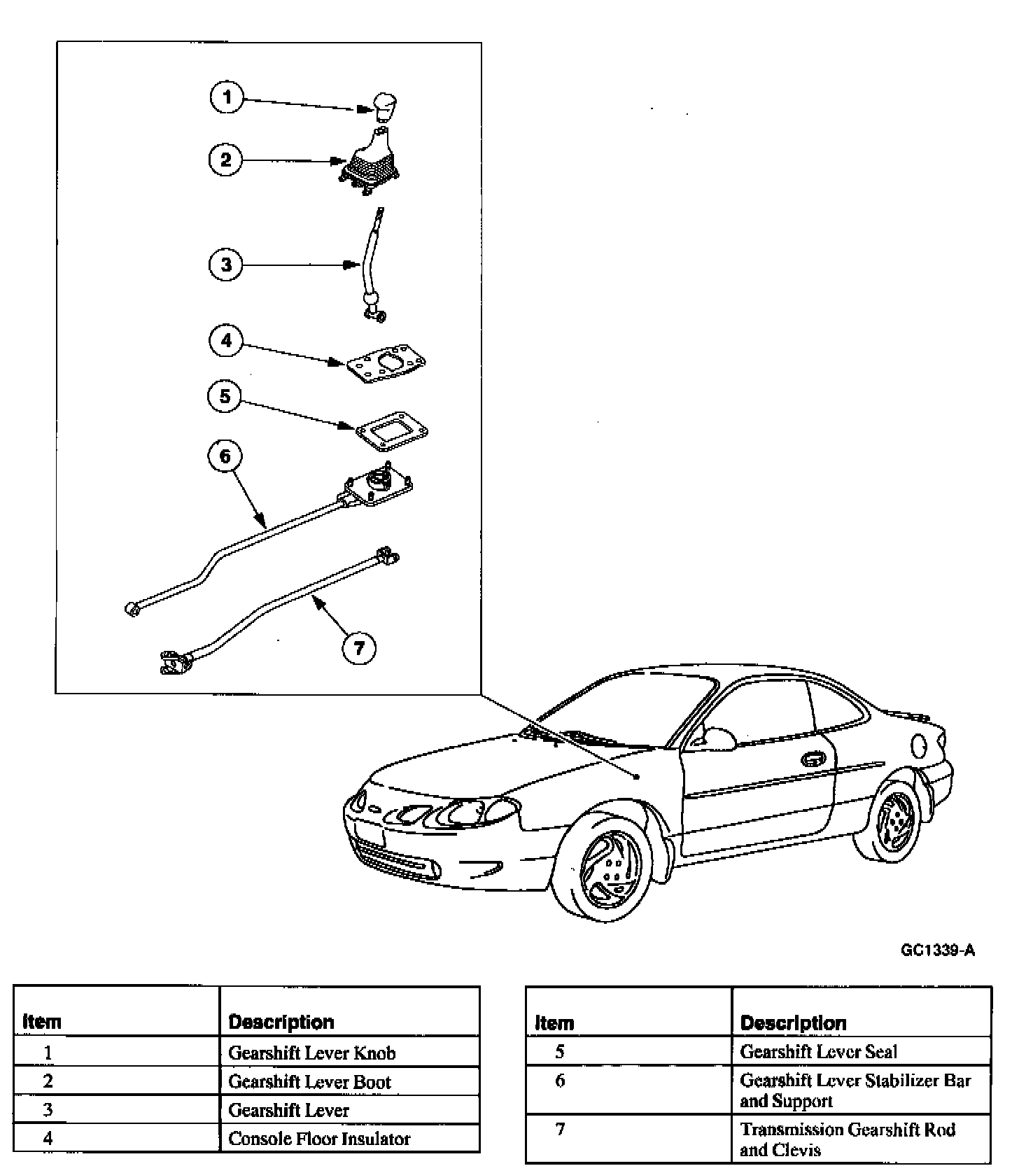 The manual transaxle is controlled by a floor mounted gearshift lever located in the floor console.