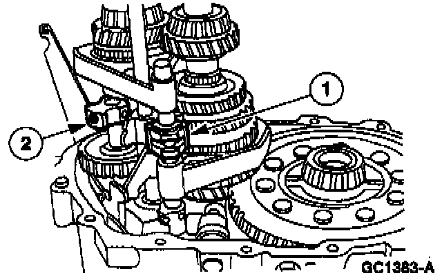 79. Install the fifth/reverse shift fork and synchronizer hub assembly.