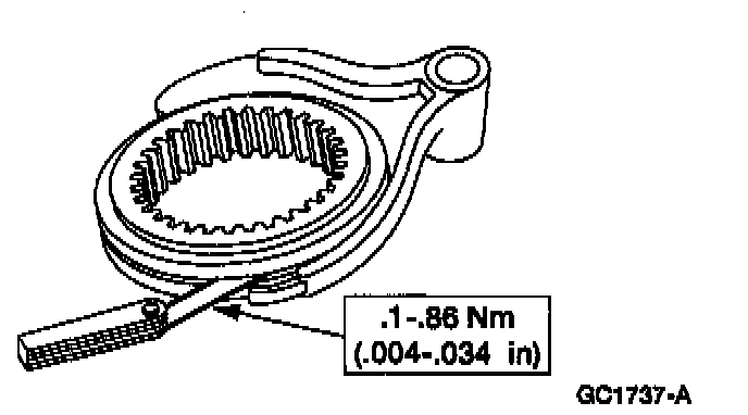 76. Measure the clearance between the fifth reverse synchronizer sleeve and its shift fork.
