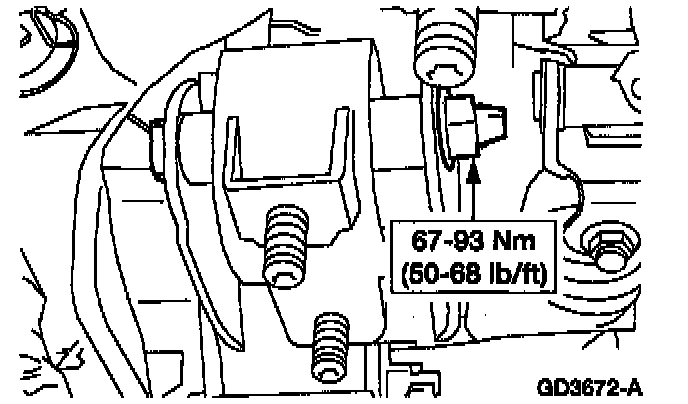 7. Partially lower the rear of the engine to gain access to the lower rear insulator bolt.