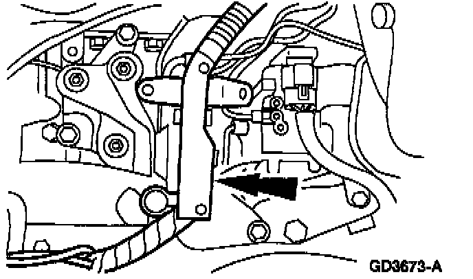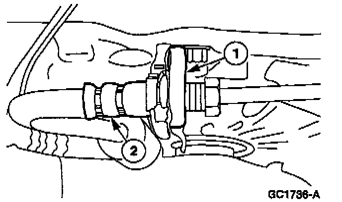 4. If equipped with the 2.0L SPI, disconnect the clutch slave cylinder tube and hose from the LH insulator.