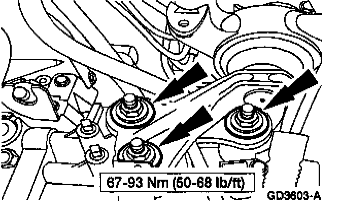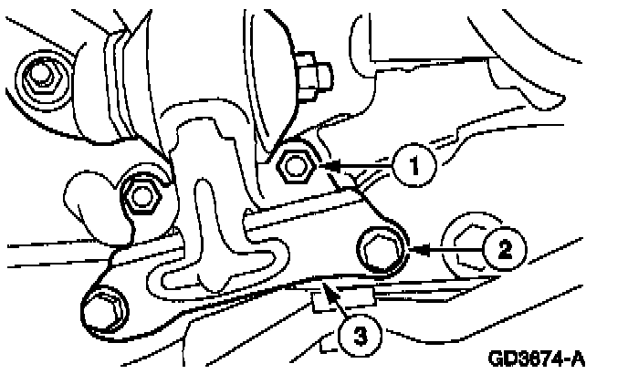 5. Remove the LH support insulator to transaxle nuts and washers.