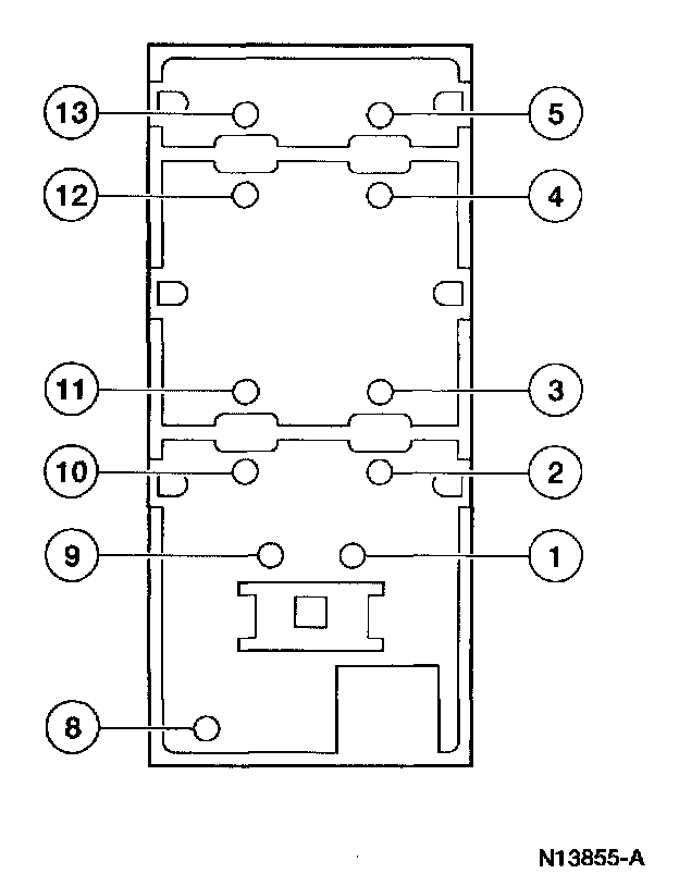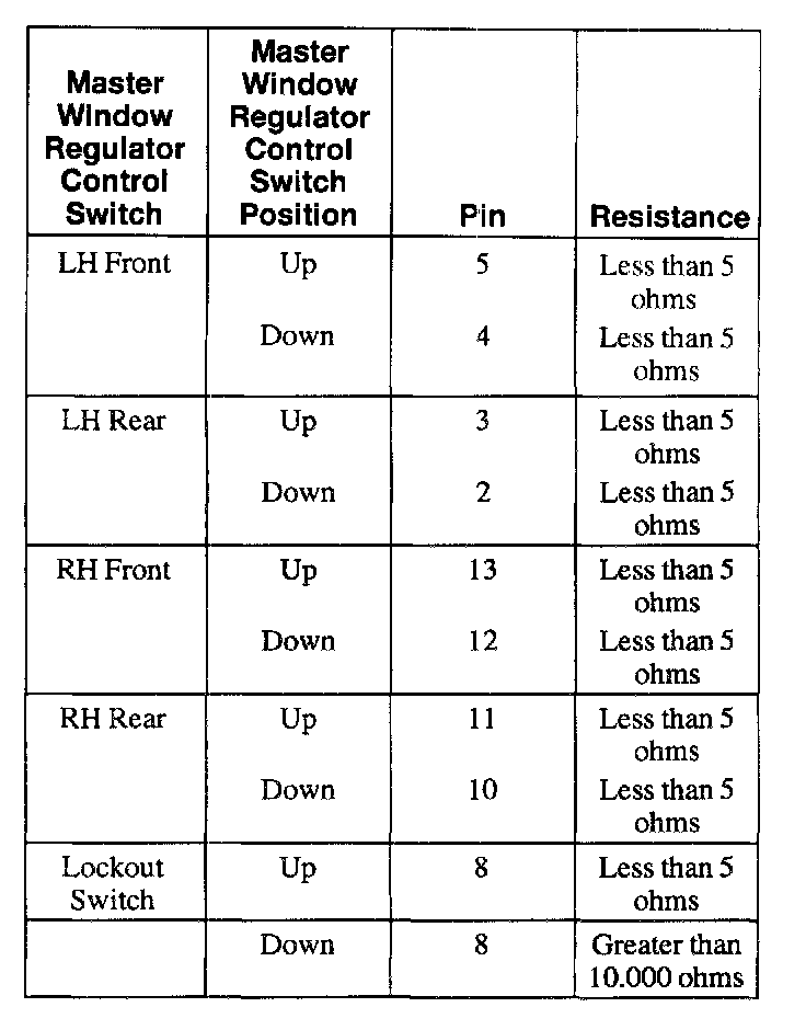 4. If the master window regulator control switch fails any of the above tests, replace it. Otherwise, return to the Pinpoint Tests. Pinpoint Tests