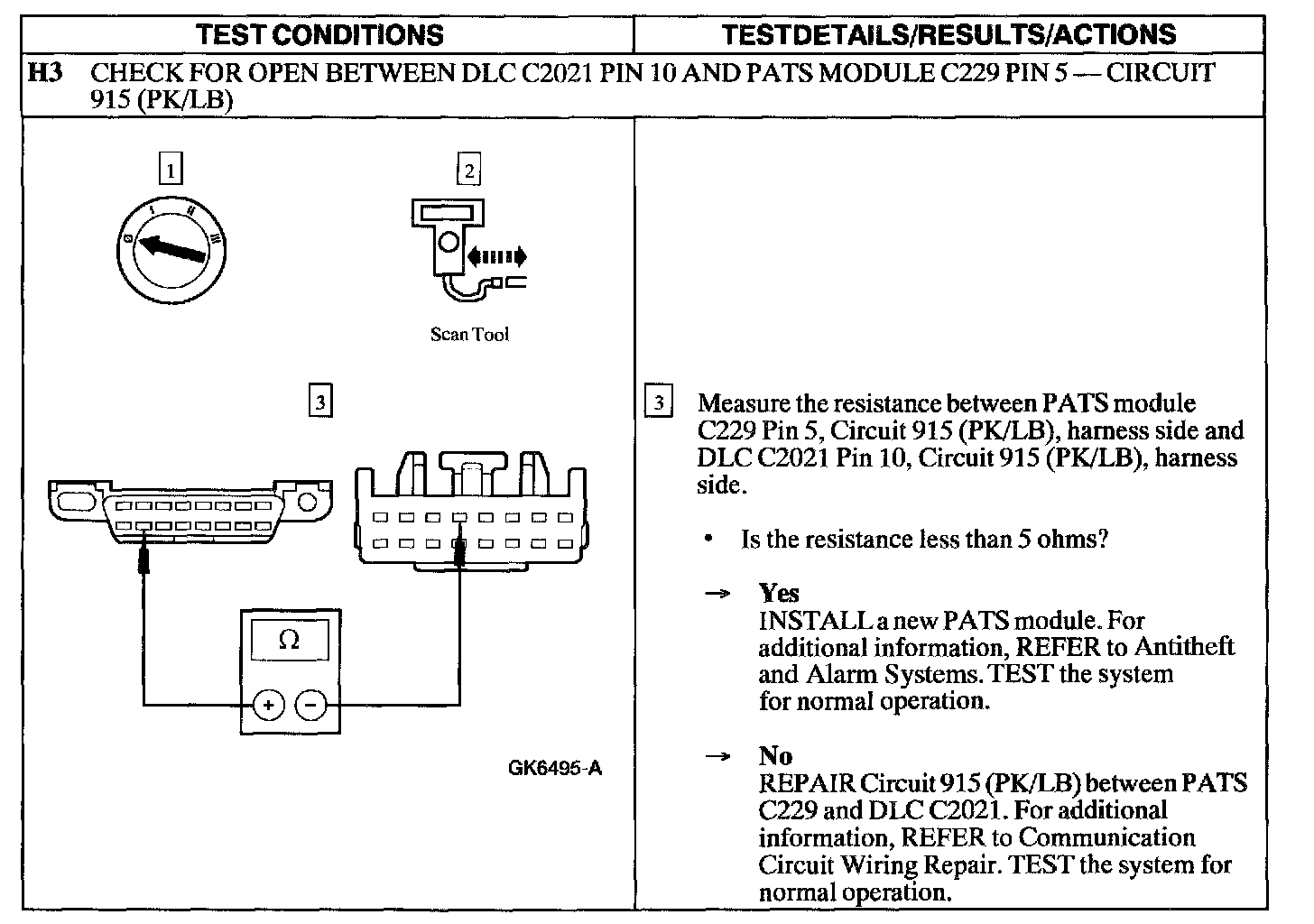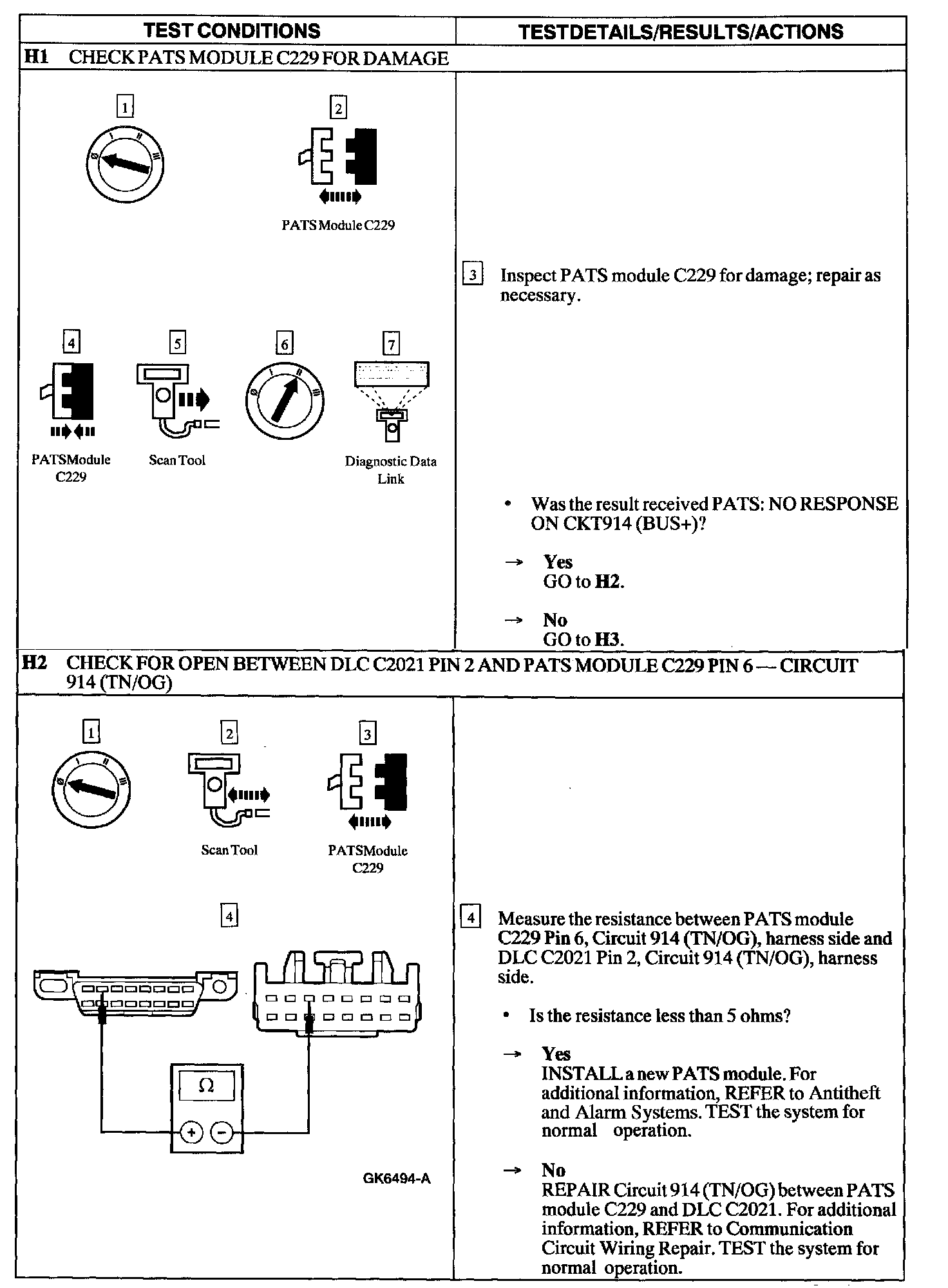 Test H: PATS Module Does Not Respond To The Diagnostic Tool