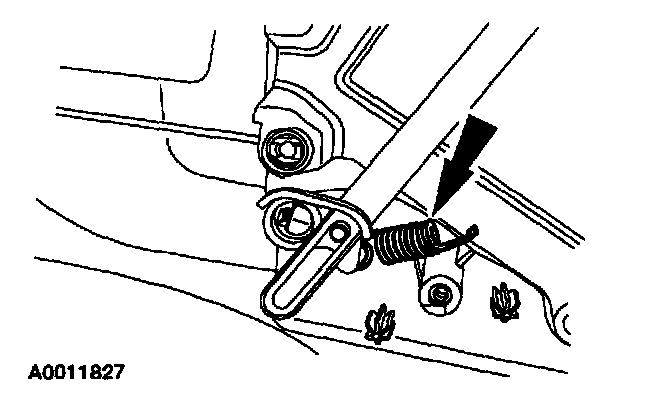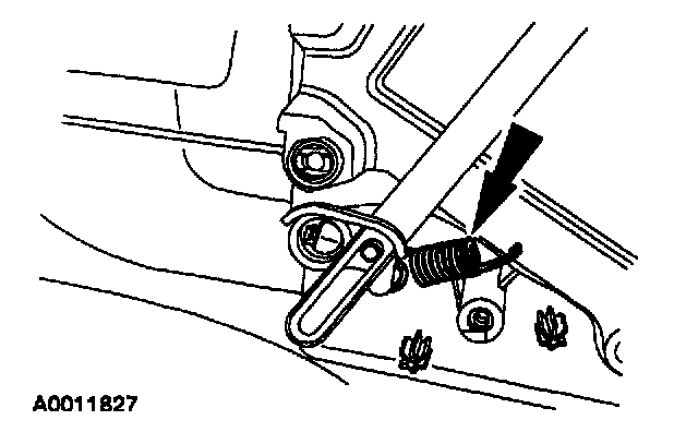 1 While depressing the tab, disconnect the A/C evaporator case damper door lever.